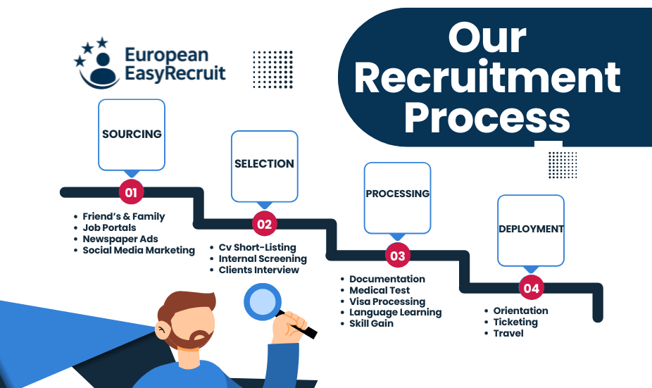 At European Easy Recruit, we don’t just hire — we build careers and deliver talent where it’s needed most. Our 4-step process makes recruitment simple, fast, and reliable: